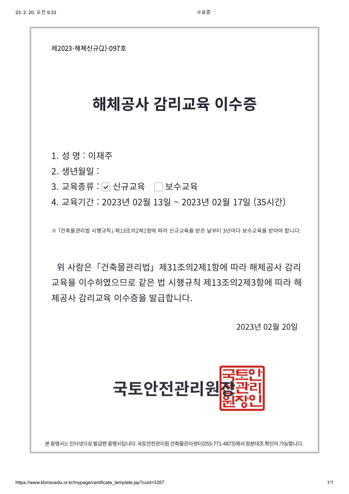 사업분야/해체공사 해체감리 (주)플러스구조엔지니어링 해체공사 감리자 자격 서류 by 플러스구조엔지니어링 2025. 2. 16. 해체공사 감리자 명부 등재 건설엔지니어링업 등록증 (건설사업관리) 대표자 해체공사 감리교육 이수증 건축공사 관계자 착공 전 안전교육 수료증 공유하기 게시글 관리 플러스구조엔지니어링 저작자표시 (새창열림) 댓글